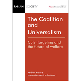 You can buy a printed copy edition of “The Coalition and Universalism” for £5, plus £1 p+p, by phoning the Fabian Society bookshop on 020 7227 4900, emailing us at bookshop@fabian-society.org.uk or send a cheque payable to “The Fabian Society” to 11 Dartmouth Street, London, SW1H 9BN.